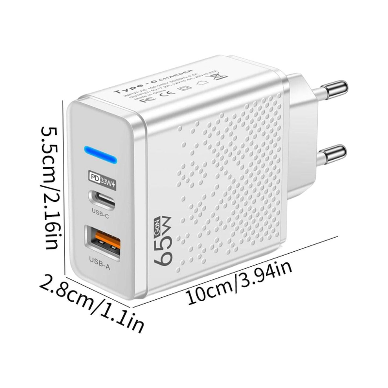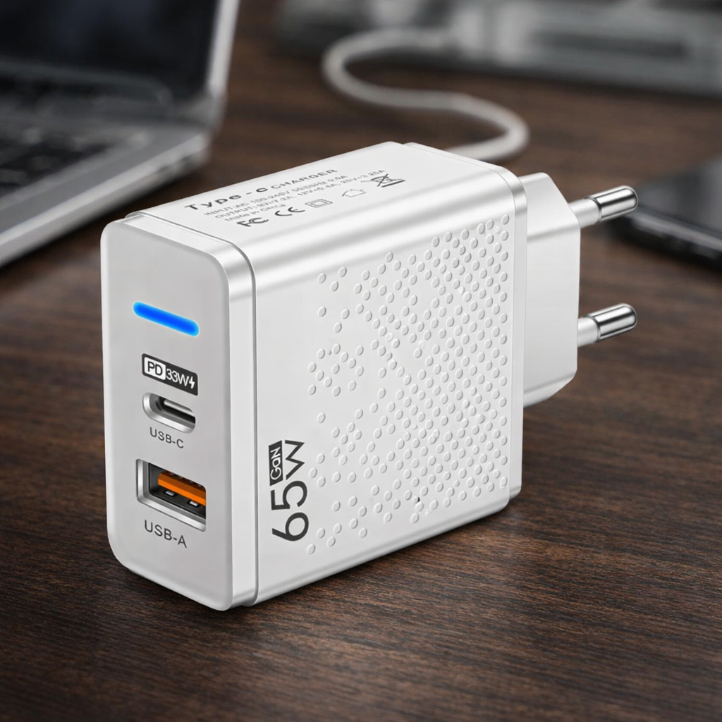Este cargador de 65W con tecnología Power Delivery y Quick Charge es la solución ideal para quienes necesitan potencia y versatilidad en un solo dispositivo.