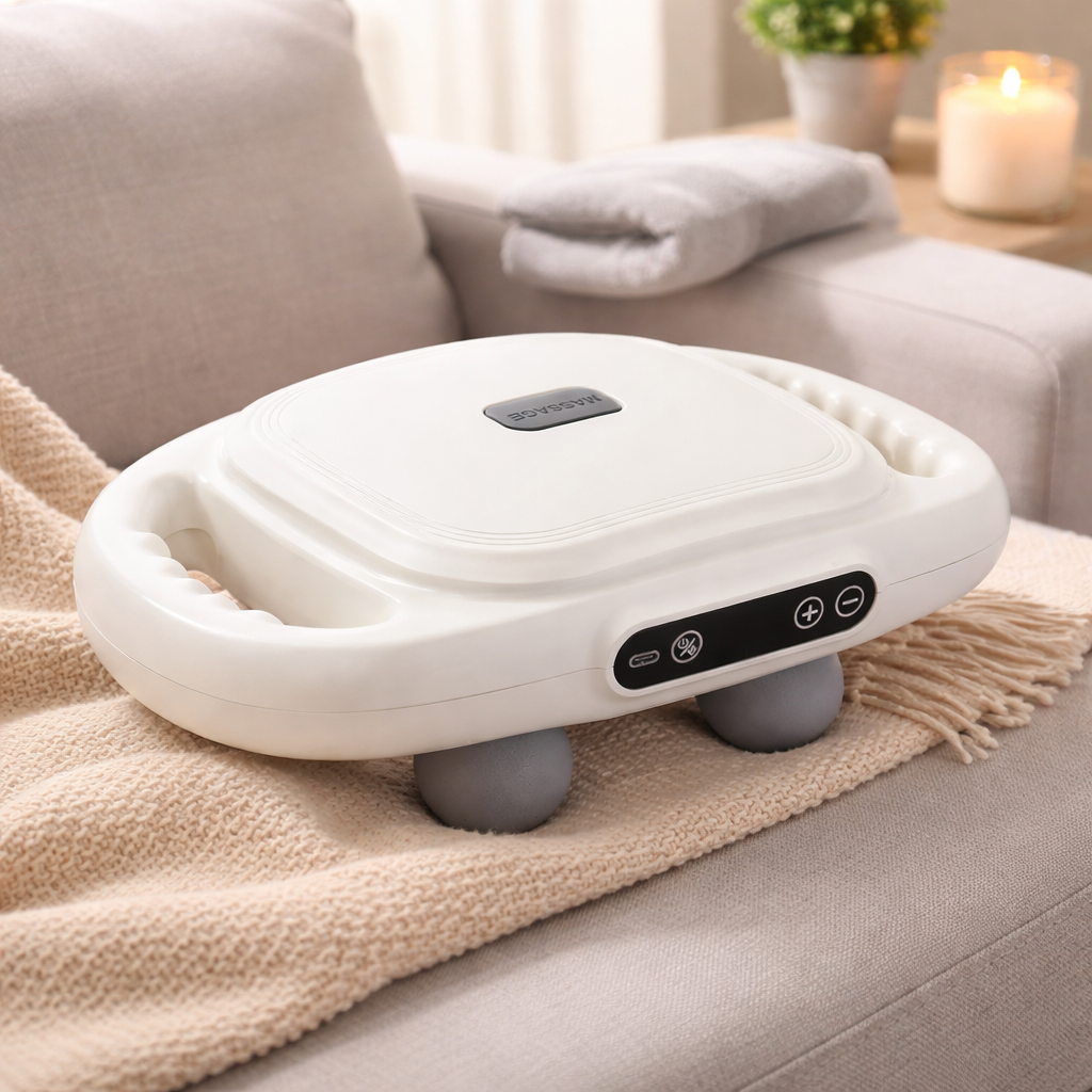 La plataforma de masajes multifuncional es un dispositivo diseñado para aliviar la tensión muscular y relajar distintas zonas del cuerpo de forma práctica y cómoda. Gracias a su sistema de masaje vibratorio con cabezales integrados, permite trabajar áreas como cuello, espalda, hombros, piernas y pies, ayudando a reducir la fatiga y mejorar la sensación de bienestar.