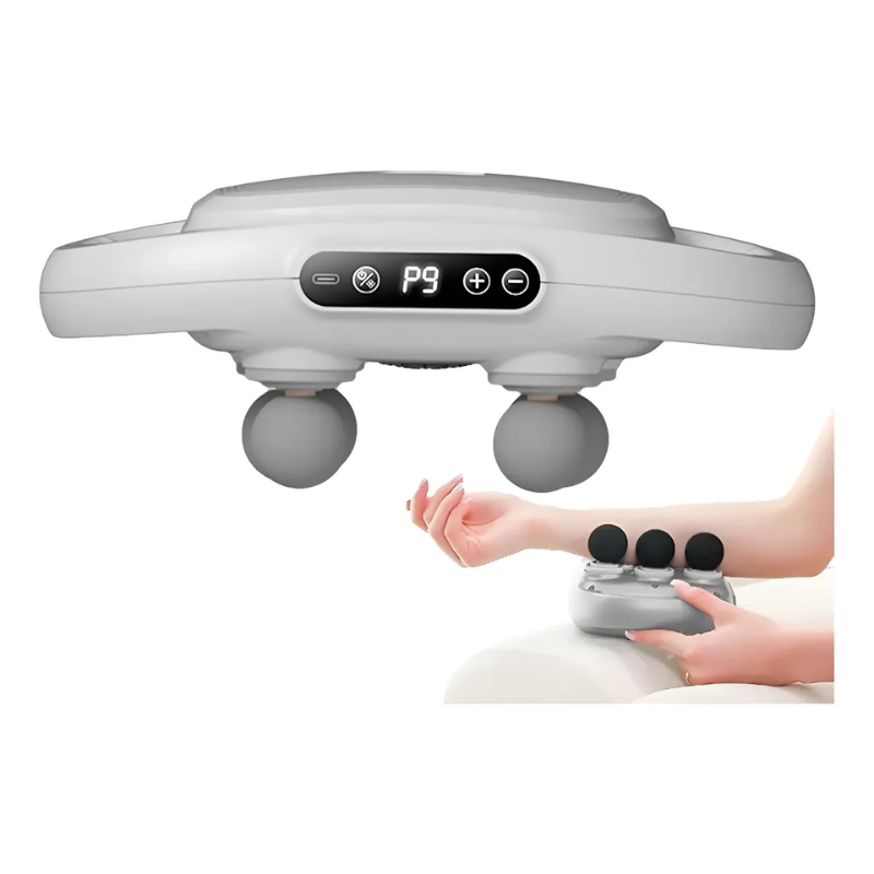 Su diseño compacto y portátil permite utilizarlo fácilmente en casa, después de una jornada de trabajo o ejercicio. Además, cuenta con controles integrados para ajustar la intensidad, adaptando el masaje según la necesidad de cada usuario.