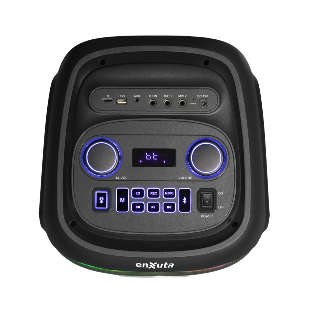 Equipado con iluminación LED integrada, display digital y controles de ecualización (treble, bass, echo y delay), este party box no solo suena bien sino que también crea un ambiente visual dinámico. Su batería recargable de alta capacidad permite llevar la música contigo sin depender de una toma de corriente, perfecto para exteriores y usos portátiles.