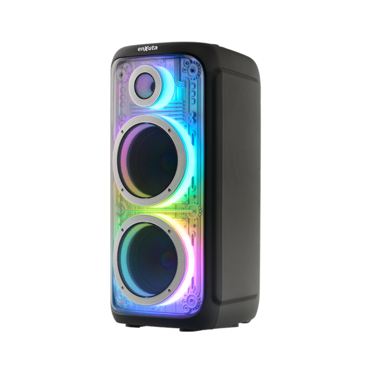 Saca el máximo provecho de tu música con el Party Box Portátil, un sistema de sonido robusto diseñado para animar fiestas, reuniones y eventos en cualquier lugar. Con una potencia de 1000W y combinación de dos woofers de 8” y un tweeter de 1”, este parlante ofrece graves profundos y agudos definidos para una experiencia sonora envolvente.
