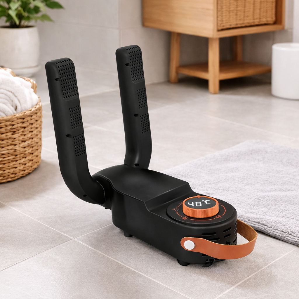 Mantené tu calzado seco, higiénico y listo para usar con este secador eléctrico de zapatos con secado inteligente 360°. Ideal para días de lluvia, humedad o para eliminar malos olores después del uso diario. Su sistema con luz UV ayuda a reducir bacterias, mientras que el temporizador ajustable permite un secado seguro y práctico.